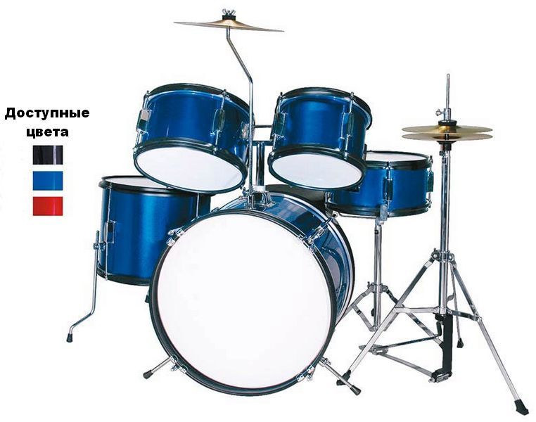 5-ти элементная барабанная установка для начинающих, в комплекте со стойками. тарелками и стулом ...