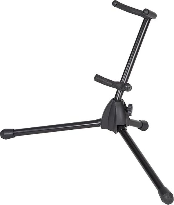 Подставка для альт-саксофона, черная, складная, оснащена защитными опорами и резиновыми нескользящими ножками.