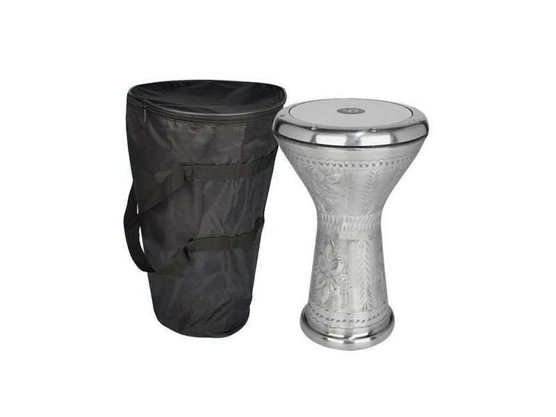 Барабан типа дарбука, комплектуется чехлом изготовлен из цельного сплава алюминия, мембрана – из пластика. Регулировка звонкости и полноты звука корректируется болтами.